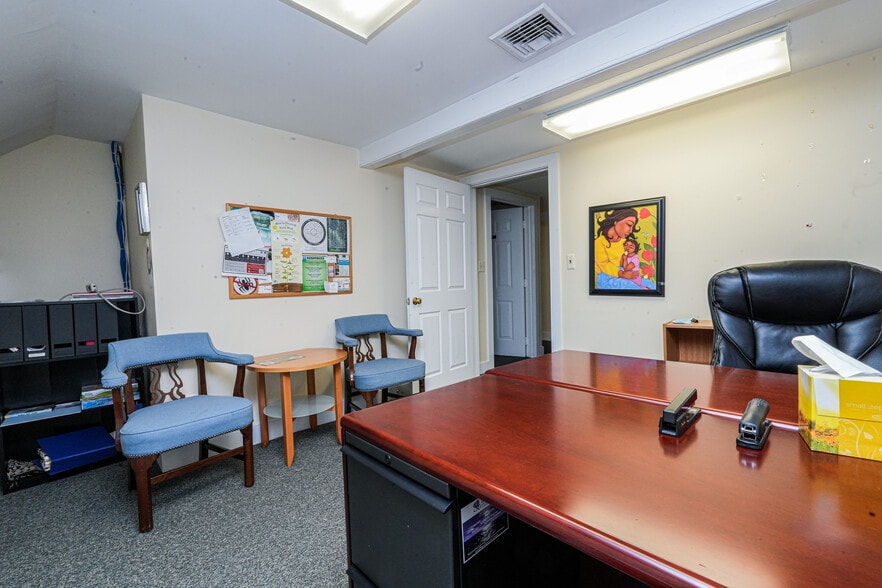 Well maintained, 3,800 sq ft Commercial Property currently tax-exempt due to nonprofit use. This building is perfectly suited for congregations, community organizations, or investors seeking a function space with strong long-term potential. Main level has reception area with 2 offices, gathering room (for meetings or group sessions). 2 bathrooms (including one in main office) 2nd level with separate entrance has 5 ample offices and 1 bathroom. Lower level with separate entrance has 2 storage room, 2 filing rooms, conference room with kitchenette and 1 bathroom. Each level has it's own dedicated central air and heating system, allowing for efficient climate control and potential for multi-tenant use. The property also offers up to 12 on-site parking spaces. Whether you're looking to expand your organization, establish a community center,or invest in a well-located property with flexible layout options, this building is a must see.