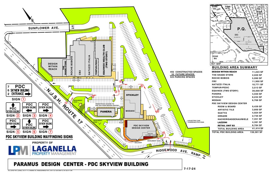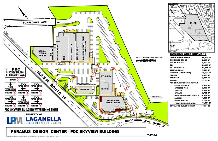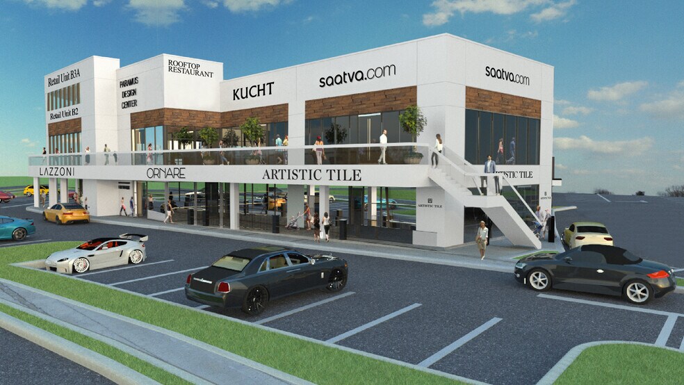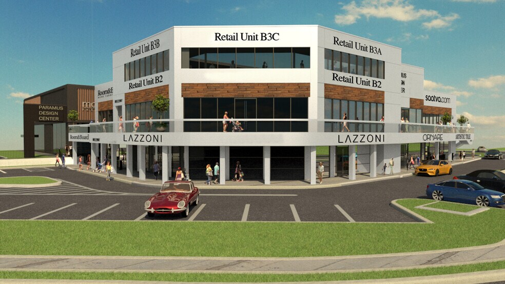 The Paramus Design Center Expansion has been redesigned with an Open Air Concept. The inclusion of a second floor balcony creates additional outdoor space and allows for smaller units, as well as an enhanced shopping experience. Contact the Developer for the latest information. Paramus Design Center is a premier retail destination in Northern New Jersey located in one of the strongest Retail Zip Codes in the Country: Paramus NJ. The center has a prime location directly visible and accessible from Route 17, which sees over 100,000 cars per day. It is a short drive on E Ridgewood Avenue to on-ramps for the Garden State Parkway. The area immediately surrounding Paramus Design Center offers strong demographics, within a 3-mile radius there are over 100,000 residents, 62,000 employees, and a combined average household income of over $197,000. Together this trade-area sees a total annual consumer spending of over $1.4 billion. Neighbors adjacent to Paramus Design Center include Barnes & Noble, Mercedes-Benz of Paramus, Tesla, Blinds To Go, and more. Paramus Design Center is home to a best in class home furnishing presence with Tenants Mitchell Gold + Bob Williams, Roche Bobois, CB2, Natuzzi Italia, The Shade Store, Modani Furniture, Tempur-Pedic, Z Gallerie, and Equinox Health Club. The center is made up of four buildings and is currently undergoing an expansion to add a fifth, which will include an outdoor rooftop patio. Monument and tenant signage is available as well as an electronic LED message board that all tenants have access to. There is ample parking (over 500 spaces) on-site for customers with multiple entry points (highway and community access) making this an easily accessible destination. The new expansion building can be Sub-Divided. The uses are Flexible, inquire for more information.